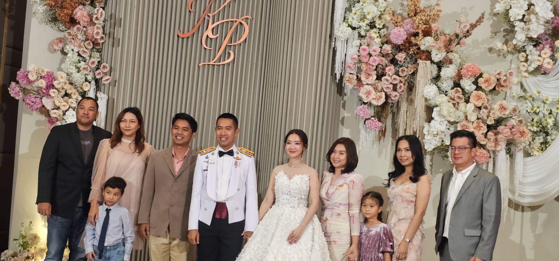 “ขอขอบพระคุณทุกท่านที่สละเวลามาร่วมแบ่งปันความสุขของเราทั้งคู่ การมาของทุกท่านคือของขวัญล้ำค่าที่เติมเต็มความทรงจำอันงดงามในชีวิตเรา”