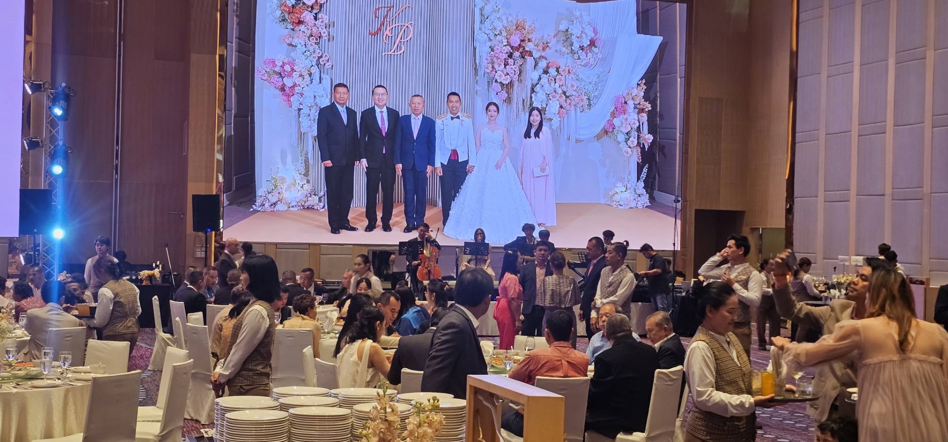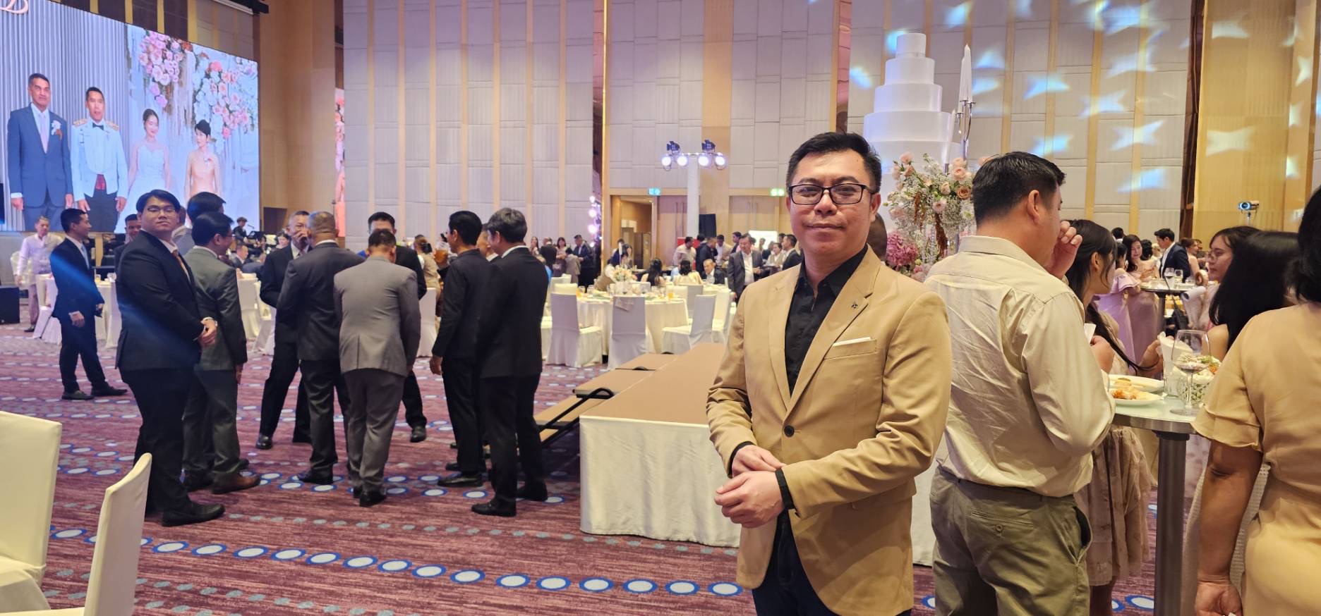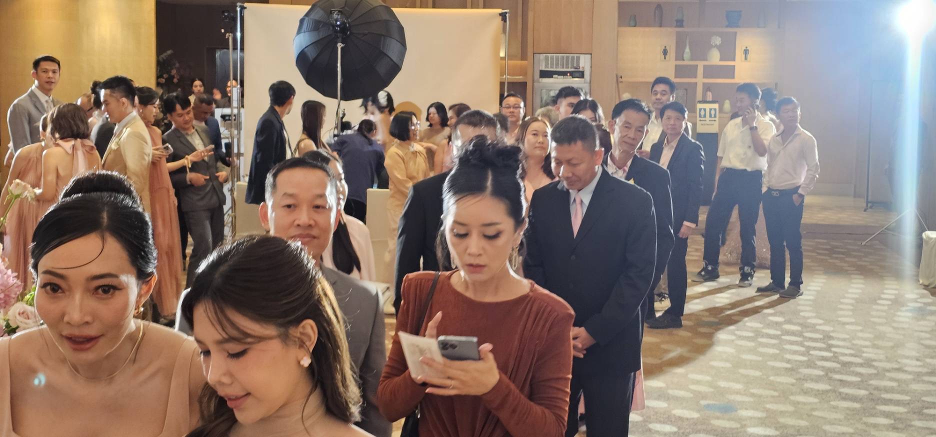 งานฉลองมงคลสมรสในค่ำคืนนี้ปิดฉากด้วยพิธี ลอดซุ้มกระบี่–รินแชมเปญ–ตัดเค้ก ท่ามกลางเสียงเพลงอวยพรและแสงไฟอุ่นละไม สะท้อนภาพแห่ง “ความรักและความยินดี” ที่จะคงอยู่ในหัวใจของทุกคนที่มาร่วมงาน 💞